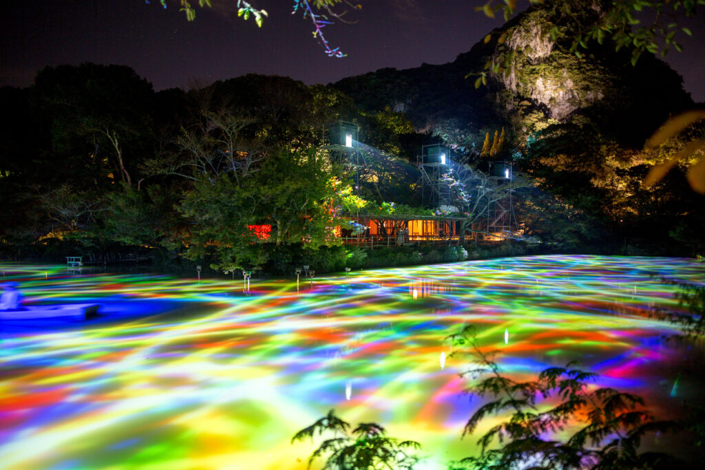 木々・石垣・水面などに映像を重ね、来場者自身がアートの一部になる。